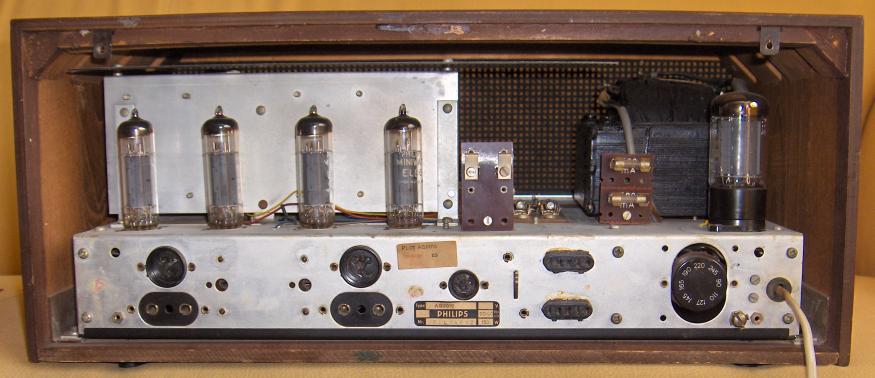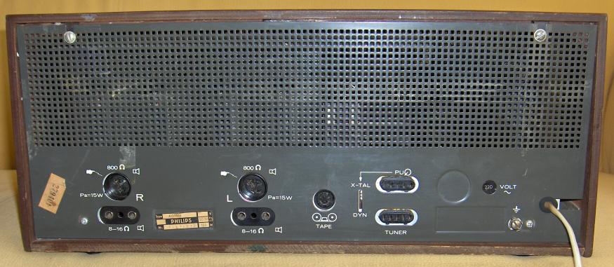 Specificaties: Uitgangsvermogen: 2 x 15 Watt (800 Ohm, d=3%) 2 x 12 Watt (bij 8 of 16 Ohm, d=3%) Uitgangsimpedantie: 8, 16 of 800 Ohm Harmonische vervorming: < 1% bij 2 x 10 Watt Bromniveau: -70dB (bij 2 x 10W) S/R verhouding: 75dB (tuner ingang) Toonregeling: Lage- en hoge tonen Buizen: EF86 (2x), ECC83 (4x), EL86 (4x), GZ34 Afmetingen: 434 x 192 x 300mm |