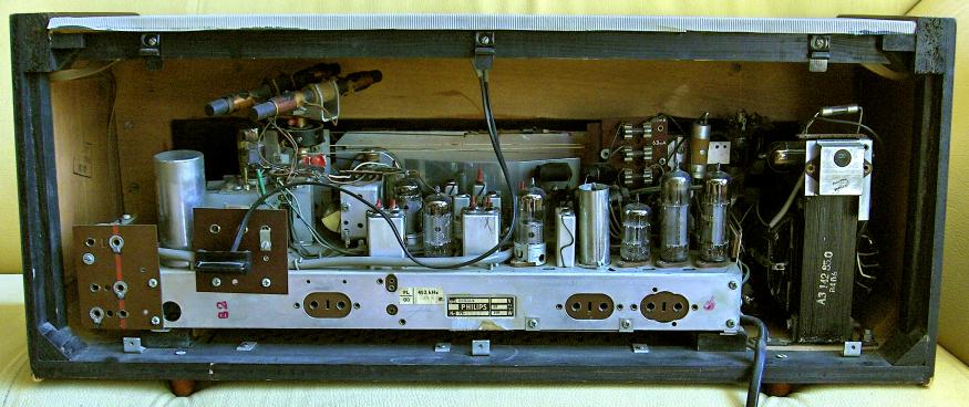 Specificaties: Golfgebieden: LG 150 - 345kHz MG 520 - 1614kHz KG 5,9 - 18,1MHz FM 87,5 - 100MHz Aansluitingen: Pick-up, Luidspreker (2x Hoge tonen + lage tonen) Buizen: ECC85, ECH81, EF89, EF85, EABC80, ECC83, EL84 (2x), EM80, EZ81 Luidspreker: AD5003 (2x) en AD5004 Toonregeling: Lage- en hoge tonen (gescheiden) Bijzonderheden: Bi-Ampli versterker, Afstemindicator, Draaibare ferroceptor, Externe luidsprekers Afmetingen: 630 x 257 x 242mm |
