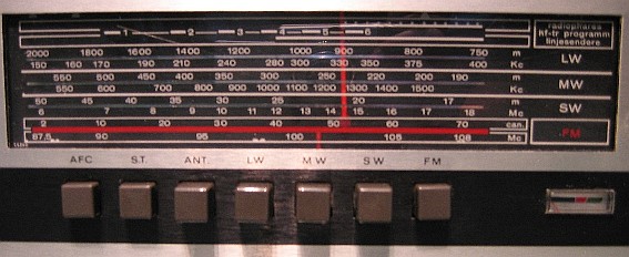 Specificaties: Golfgebieden: LG 150 - 400kHz MG 517 - 1622kHz KG 5,9 - 18,2MHz FM 87,5 - 108MHz (stereo) MF Waarden: AM: 452kHz FM: 10,7MHz Gevoeligheid: FM: 5-6µV bij 26dB S/R verhouding AM: 15µV bij 26dB uitgangsspanning Overspraakdemping: beter dan -30dB bij 1kHz Uitgangsvermogen: 2 x 7 Watt (continu) Frequentiebereik: 20 - 20.000 Hz (± 2dB) Uitgangsimpedantie: 4-8 Ohm S/R verhouding: > 70dB bij 1000 Hz Overspraakdemping: > -50dB bij 1000 Hz Harmonische vervorming: < 2% bij 2 x 7 Watt Toonregeling: Lage- en hoge tonen Toonfilters: Rumble en scratch filter (12dB per octaaf) Gewicht: 8kg Afmetingen: 218 x 657 x 144mm |