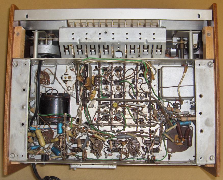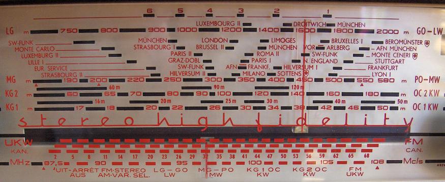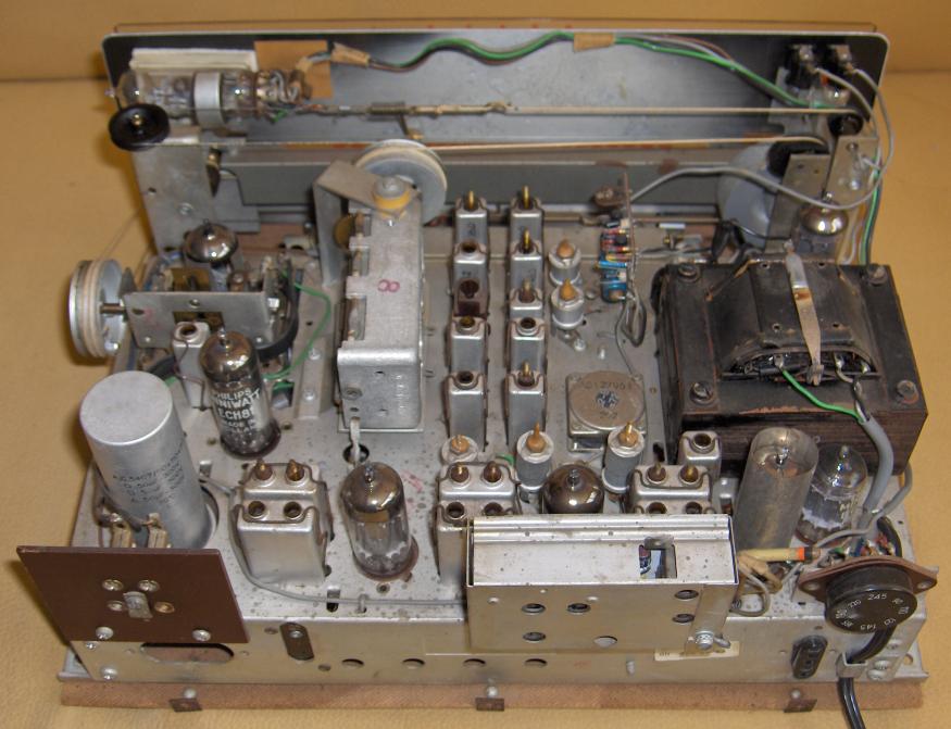 Specificaties: Golfgebieden: LG 150 - 405kHz MG 517 - 1622kHz KG1 1,61 - 5,1MHz KG2 5,94 - 18MHz FM 87,5 - 108MHz (stereo) Buizen: ECC85, ECH81, EF89 (2x), EABC80, ECC82, EZ80, EM84 Afmetingen: 345 x 144 x 285mm |
